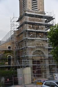 Réfection des toitures et du clocher : installation de l’échafaudage |